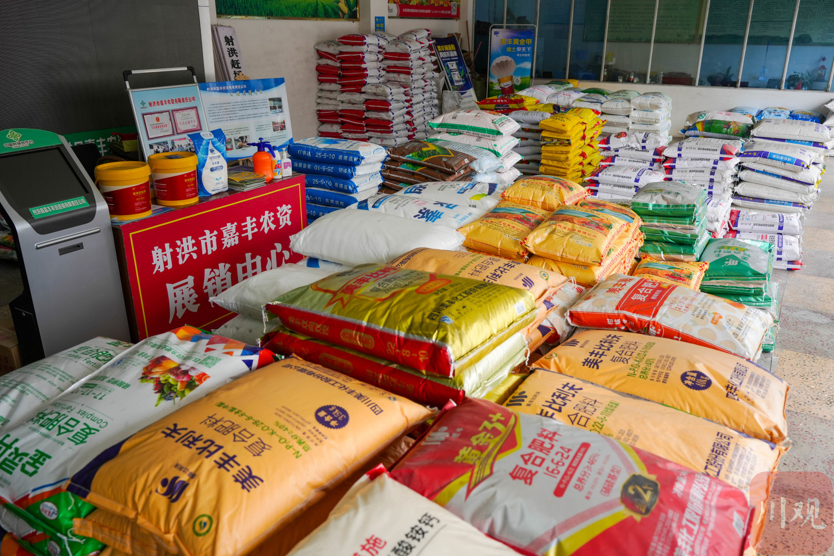 与此同时,在射洪市洋溪镇双檬村供销社的仓库里,化肥、种子等各式农资摆放整齐、一应俱全。供销社主任刘俊正忙着清点化肥,准备送货。“现在村里春耕比较忙,像种子、化肥这种货物我们可以直接送到村民地头。”