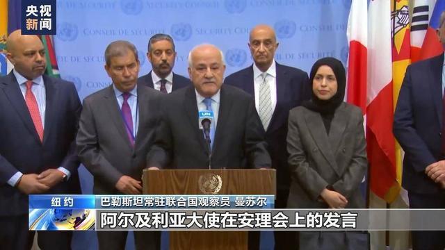 巴勒斯坦常驻联合国观察员 曼苏尔:阿尔及利亚大使在安理会上的发言代表了阿拉伯国家,对于这一未能通过决议草案的统一意见反对的原因很明显,包括这是单方面的草案,除了可能有一次之外,完全没有提到以色列。我们拒绝把正发生的事情当做恐怖主义问题,这是针对加沙地带巴勒斯坦人的种族灭绝。