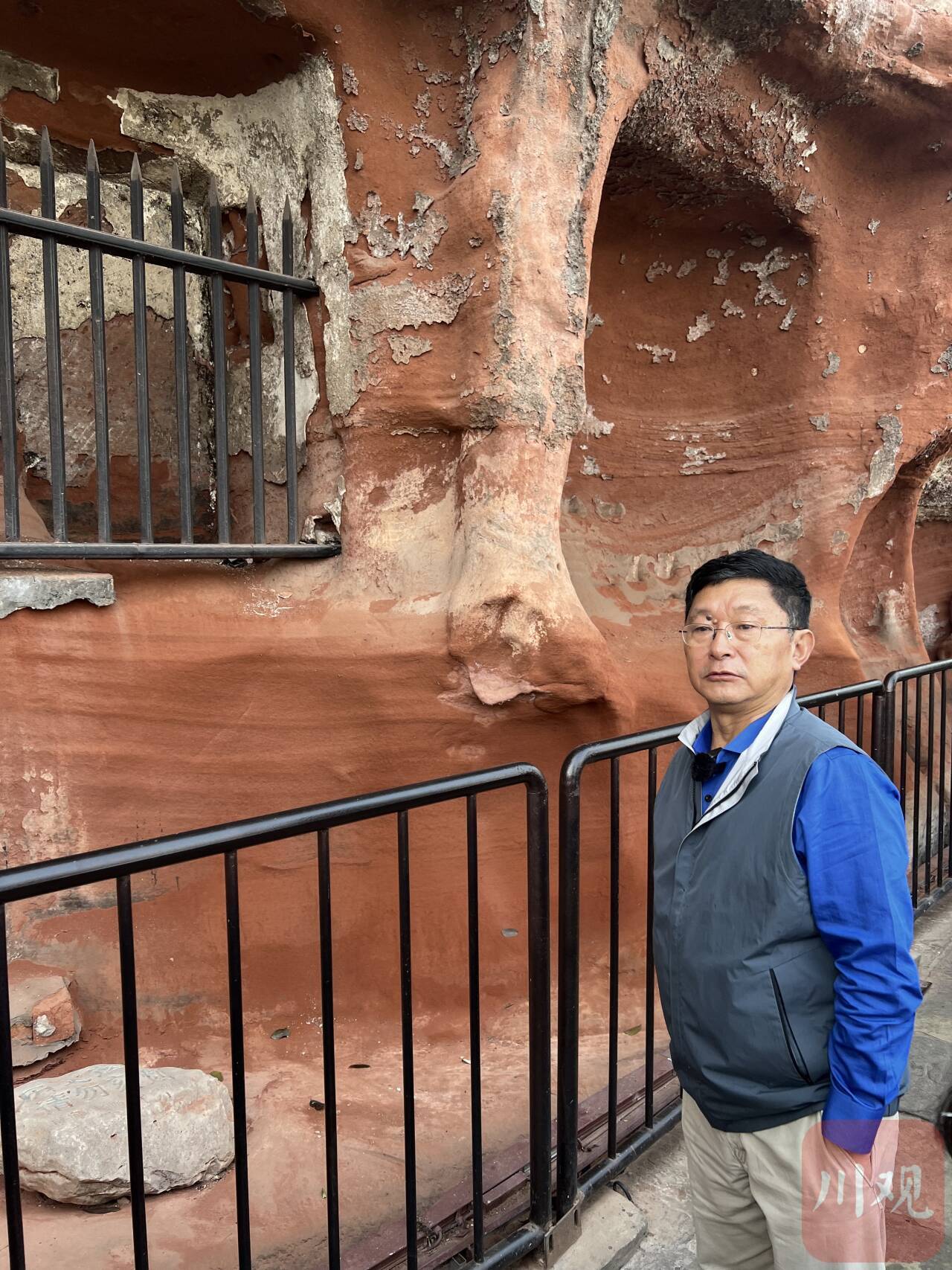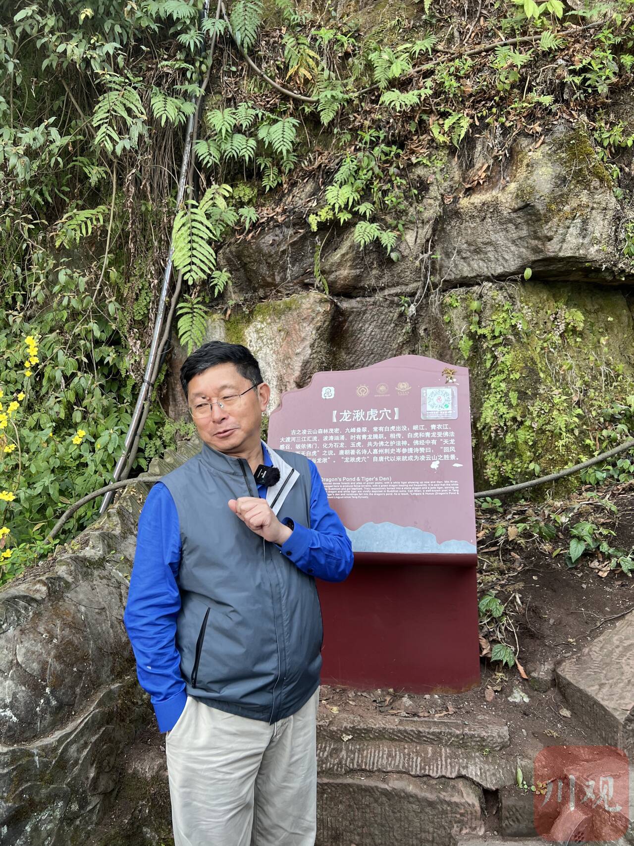 值得一提的是,参天古木楠树令阿来驻足停留,精通植物学的他将楠树的形态特征、生长环境、分布范围一一道来。而除了植物,阿来对自然地理也是深有研究。在登山的过程中,他就多次提到凌云山上目之所及的石头、岩壁、悬崖处都是红砂石,对于这种石头的形成,阿来解析道:“四川盆地以前是海,是湖,后来地壳发生运动,海底的沙,湖底的沙就升上来,沙子都被压紧了,形成了沉积岩,所以整个四川盆地都是红色的基调。”阿来还特别提到了德国地理学家、地质学家李希霍芬,在他的中国旅行日记中,李希霍芬写下了这样的文字:“之后便看到河边长长的红色城墙……岷江对侧矗立着绿色的丘陵,其岩壁是红色的……嘉定府不是大城市,看起来以前更小,因为现有的城墙里面还有一圈老城墙,也用红砂岩石块建成的,城门还保留着……”