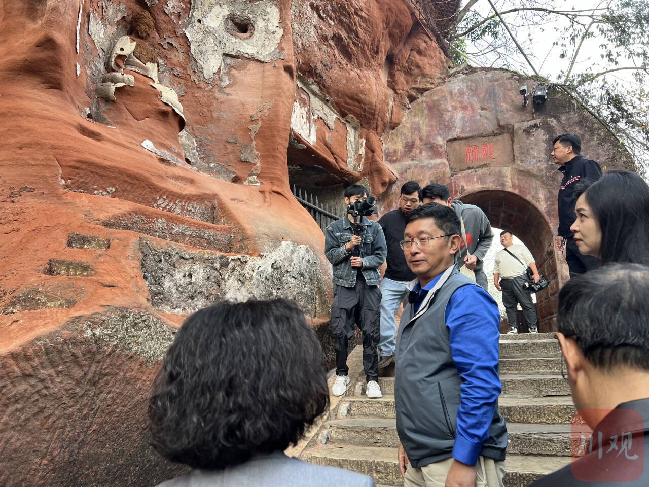 3月23日上午,著名作家阿来踏上了岑参的“嘉州路”,以沉浸式行走拉开了阿来系列讲座“唐宋诗中的巴蜀与成都”——乐山专场活动的大幕。他从岑参当年踏上的石梯缘凌云山而上,在龙湫虎穴、载酒亭、东坡楼、清音亭等抚今追昔,鉴往知来,遥想岑参、苏东坡当年到此一游的情境,看他们看过的风景,念他们写下的名句……
