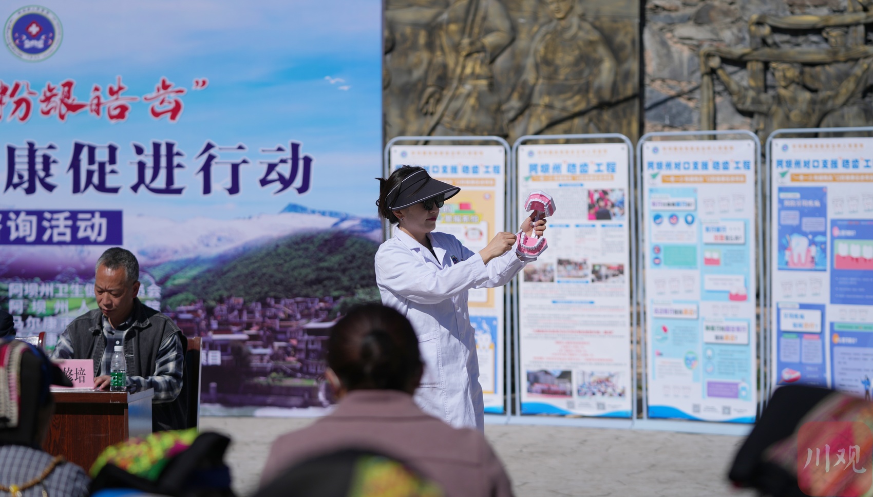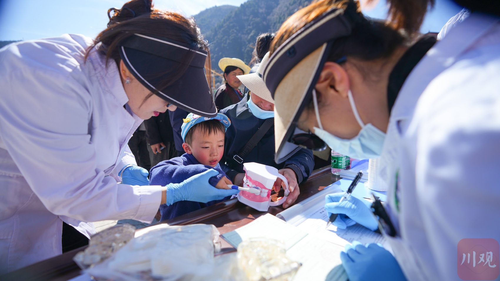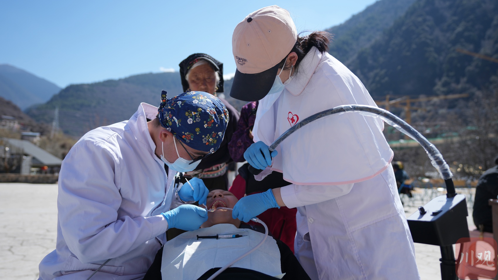 阿坝州人民医院的医生们结合浙阿对口支援的“皓齿工程”,为村民们提供了免费的口腔健康宣教、检查和治疗服务。阿坝州人民医院口腔科主任江蓉说,“小朋友的蛀牙问题很常见,我们可以根据他们的齿龄进行涂氟和窝沟封闭预防。而老年人常见的口腔问题比如牙龈萎缩、牙根暴露和牙齿缺失等,我们也会在现场进行检查,并提供进一步治疗的建议。”