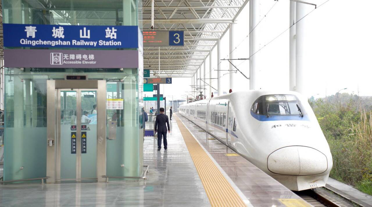 3月23日10时55分,一列“和谐号”动车组列车从重庆北站发车,途经合川站、遂宁站、大英东站、成都东站、成都南站、成都西站、安靖站7个站点,于当天14时59分到达目的地——位于成都都江堰的青城山站。