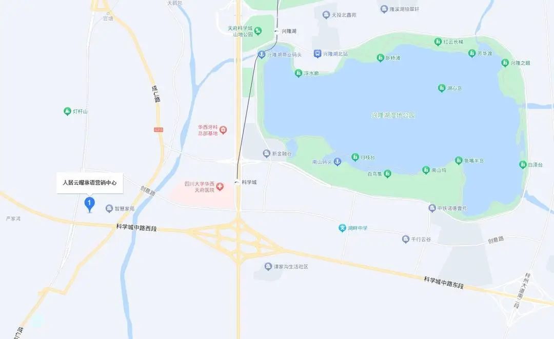 人居云曜林语位于成都煎茶街道,属于兴隆湖湿地公园西侧,与兴隆湖湖区直线距离约1.5公里。