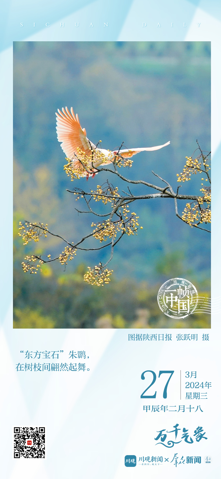 今天的《一帧中国》,川观新闻联合群众新闻网,带您来到陕西汉中朱鹮国家级自然保护区,欣赏“东方宝石”的翩然舞姿。