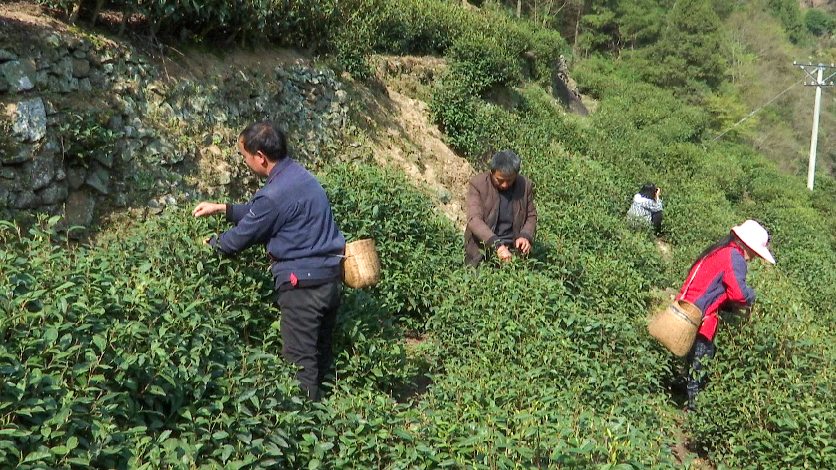 “今年我们这片茶园管护得很好,长势也比较喜人,产量相对去年有所提高,每人每天能采3至5斤鲜叶。”温泉村村民杜培礼说。