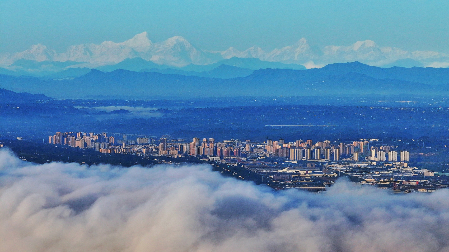 “城市+雪山”,近处的鳞次栉比与远方的白雪皑皑融合在一幅画卷中,成为蒲江特别的美景。在蒲江,一天中看雪山的最佳时间是清晨,太阳的每一寸光辉都会赋予雪山彩色的生命。