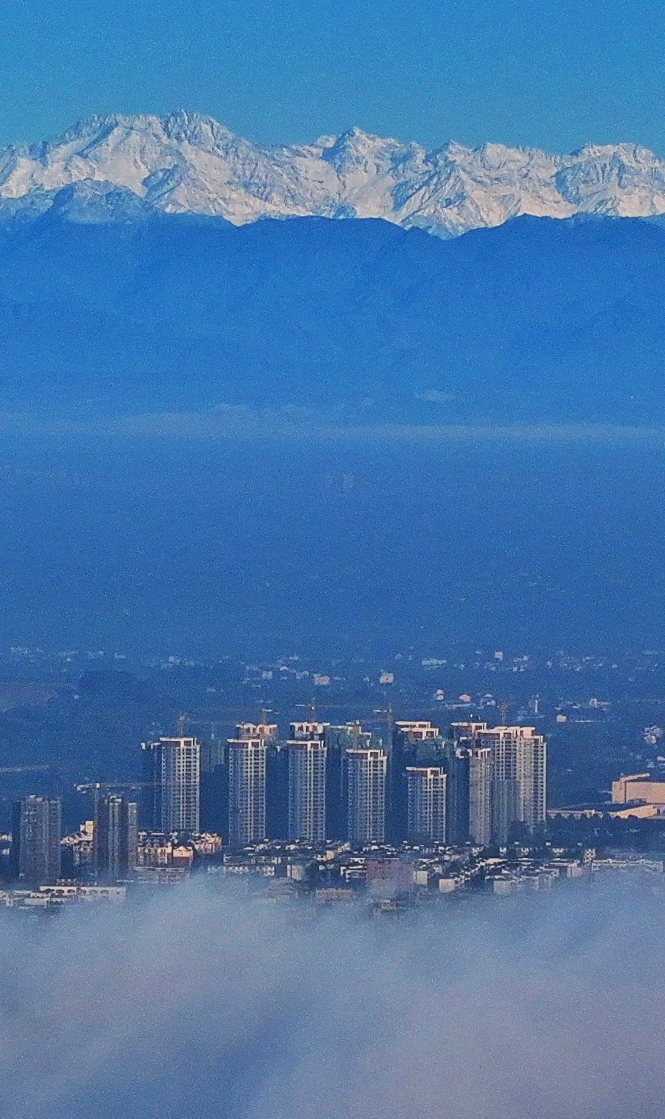 在成都向西70公里,蒲江人享受着与雪山的每一次遇见。由于独特的地理位置,蒲江往西距大雪塘直线距离约81公里,距幺妹峰约116公里。从已有的观山记录来看,蒲江一年四季均可看到雪山。