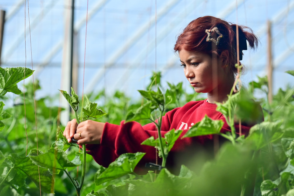 近年来,新疆大力推动沙漠、戈壁等未利用地发展设施农业。设施蔬菜不仅有效保障了新疆冬春蔬菜供给,也成为带动农民就业、扩大农民就业的重要产业。