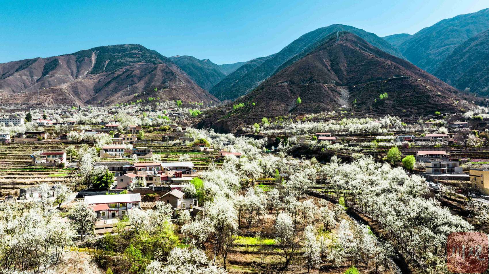 3月24日,阿坝州金川县的梨花次第开放。从高处俯瞰,绵延数十公里的金川河谷呈现出“千树万树梨花开”的壮观景象。