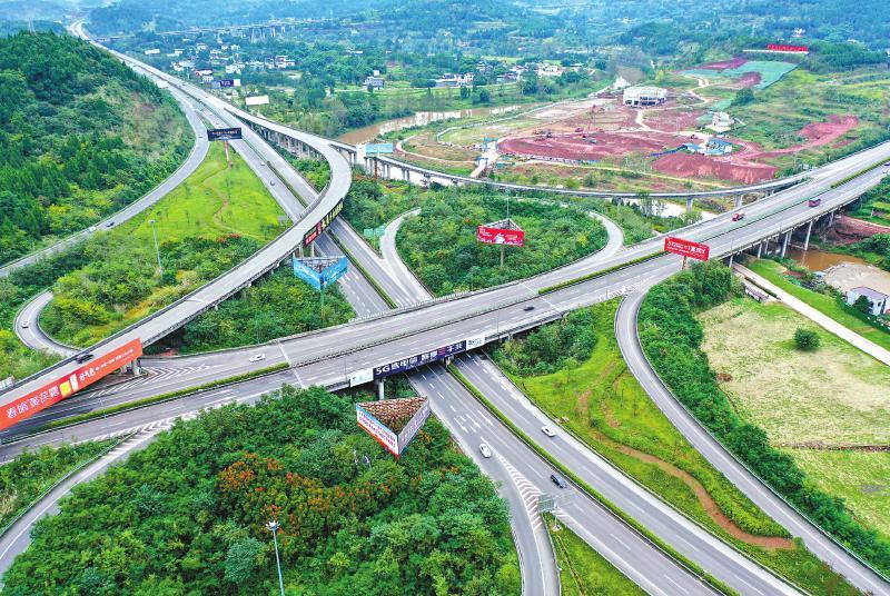 10月18日拍摄的南充市顺庆区,多条高速公路通过互通工程紧密连接在一起。 黎涛摄(资料图片)