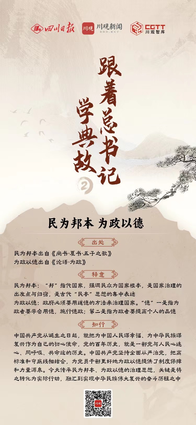 民为邦本、为政以德是中华优秀传统文化中的瑰宝之一,体现出重要的国家与社会治理思想。在文化传承发展座谈会上,习近平总书记强调“民为邦本、为政以德的治理思想与人民至上的政治观念相融”,说明我们今天坚持以人民为中心的发展思想有着悠久的历史底蕴和文化基因。