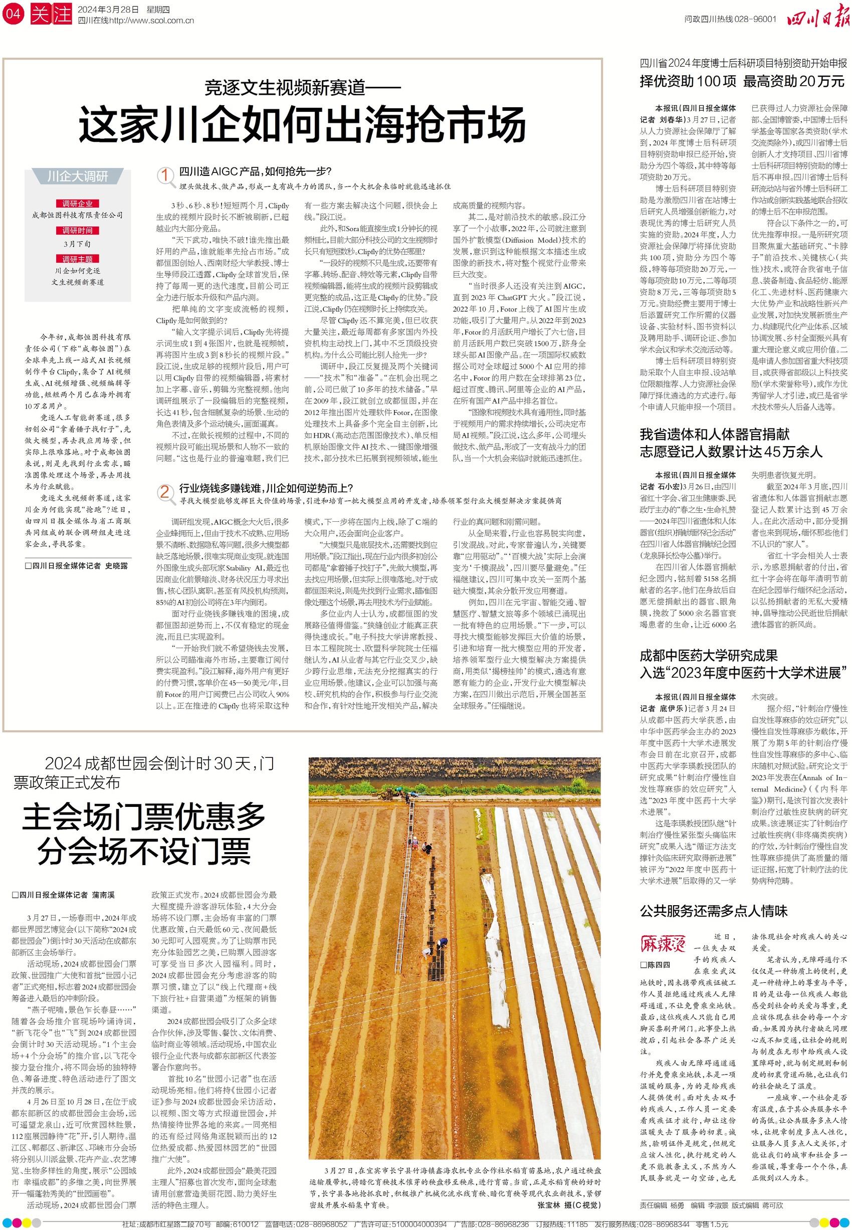 近5年来,我省新增体育场地11.46万个,累计增幅全国排名第一。截至2023年底,全省共有体育场地30.59万个,总面积达2.11亿平方米。补齐全民健身设施短板,四川今年还有大动作:年内推进学校体育场馆和公共体育场馆双向开放,进一步完善“15分钟健身圈”;新建的健身设施项目原则上应100%配置老年人和儿童健身设施等。幸福感又要提升啦!更多举措关注今日8版。
