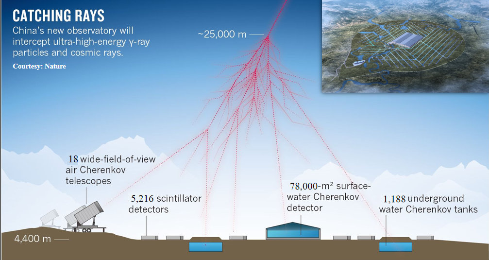 早期在西藏羊八井进行的高山宇宙线探测等众多实验,仅能测量电磁粒子碎片,手段相对有限,测量的精度也受影响。