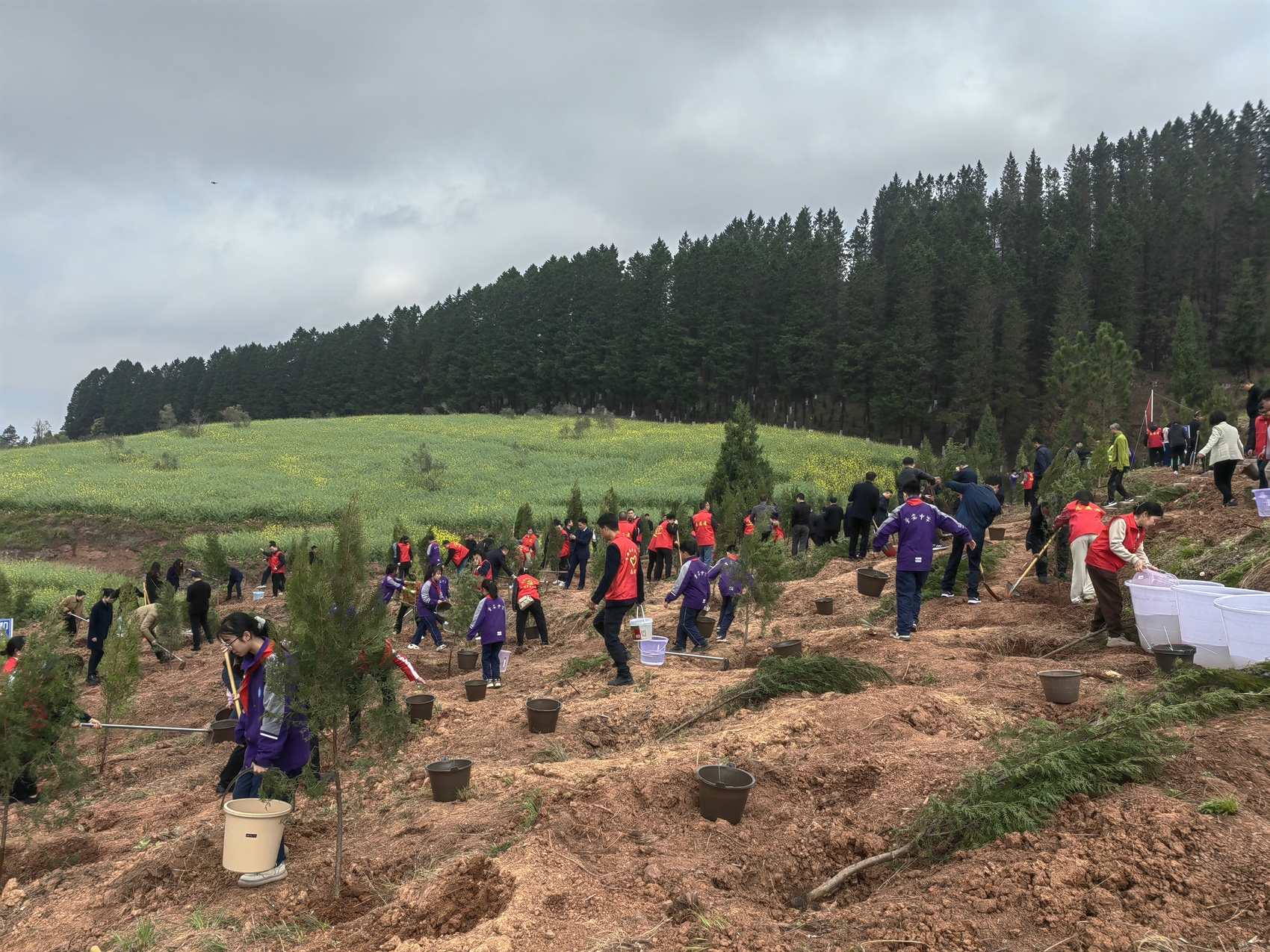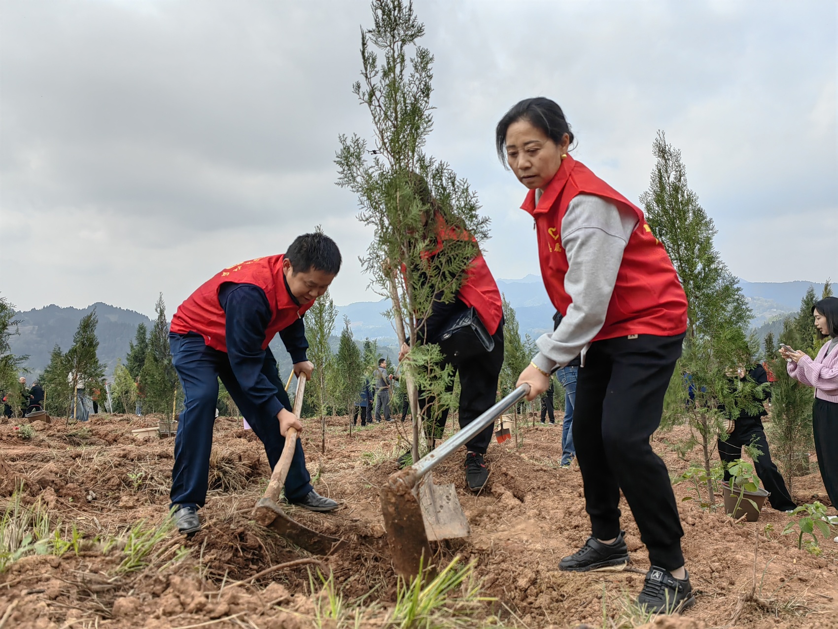 3月28日,达州市2024年春季全民义务植树暨森林“四库”建设推进会在开江县普安镇水口庙村红花山举行。现场,机关干部、群众、学生等400余名人共同种下6700余棵中山柏。
