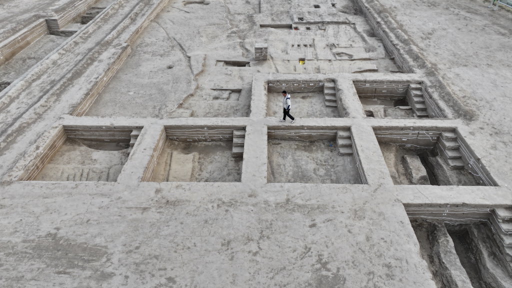 这是雄安新区南阳遗址考古发掘现场(3月26日摄,无人机照片)。