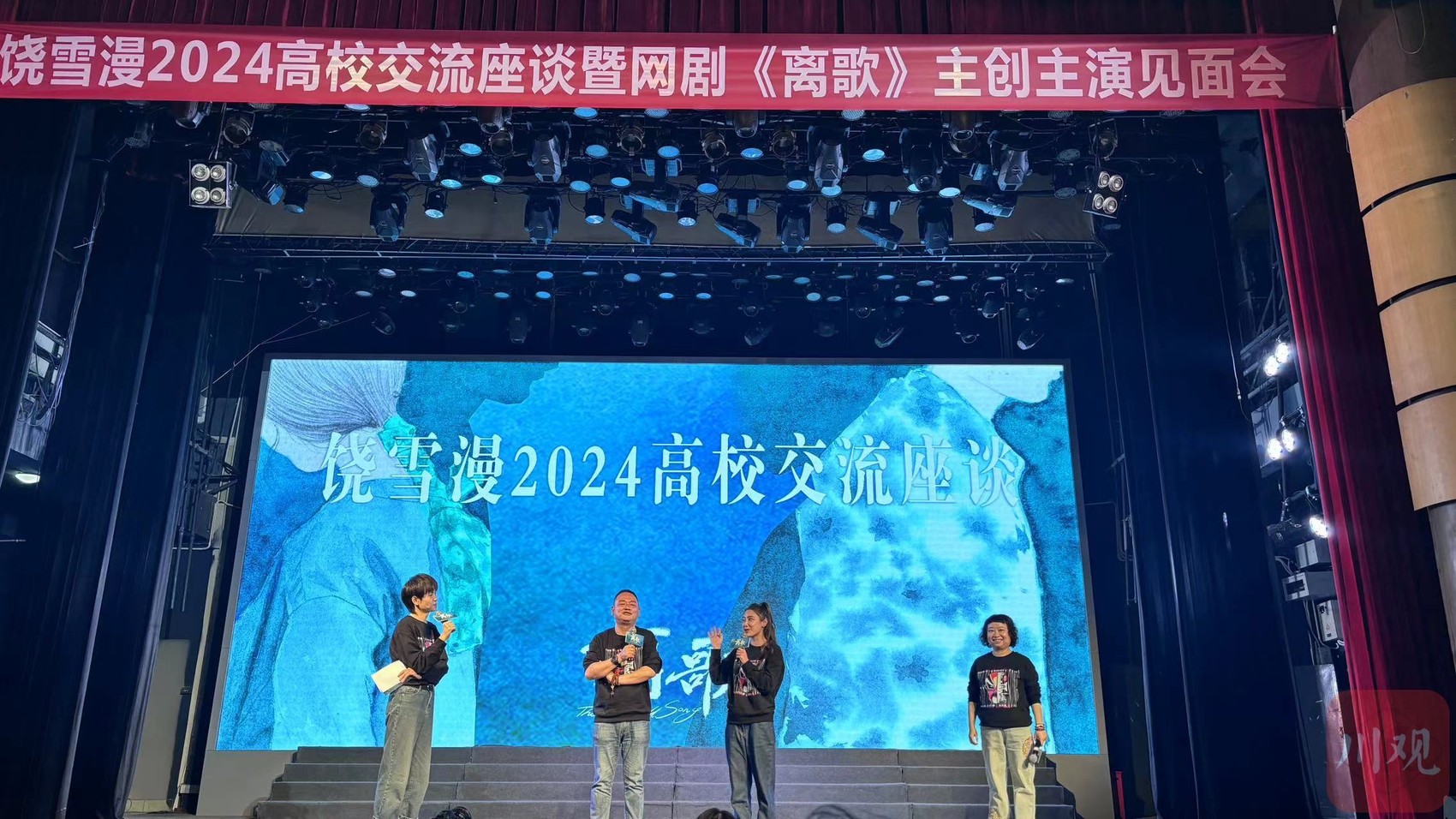 作为“青春疼痛文学”的代表作家,饶雪漫曾成功孵化出《左耳》等影视IP。此次网剧《离歌》由饶雪漫亲自操刀改编,以四川作为故事背景城市,讲述了马卓(李婷婷 饰)和夏泽(周澄奥 饰)遭遇家庭剧变,分别成为“受害人之女”和“嫌疑人之子”,原为青梅竹马的两人最终突破重重芥蒂,寻求真相与成长的故事。在现场,同学们被剧中的青春气息感染,不少人表示,他们被剧中马卓和夏泽纵横交错的命运触动。