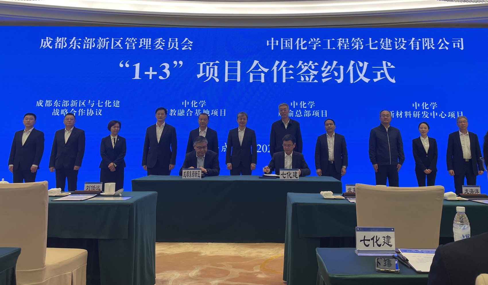 3月29日,成都东部新区与中国化学工程第七建设有限公司“1+3”项目合作签约仪式在成都天府新城会议中心举行。活动现场,双方签署《战略合作框架协议》并落地中化学产教融合基地、中化学成渝总部、中化学新材料研发中心三个项目。