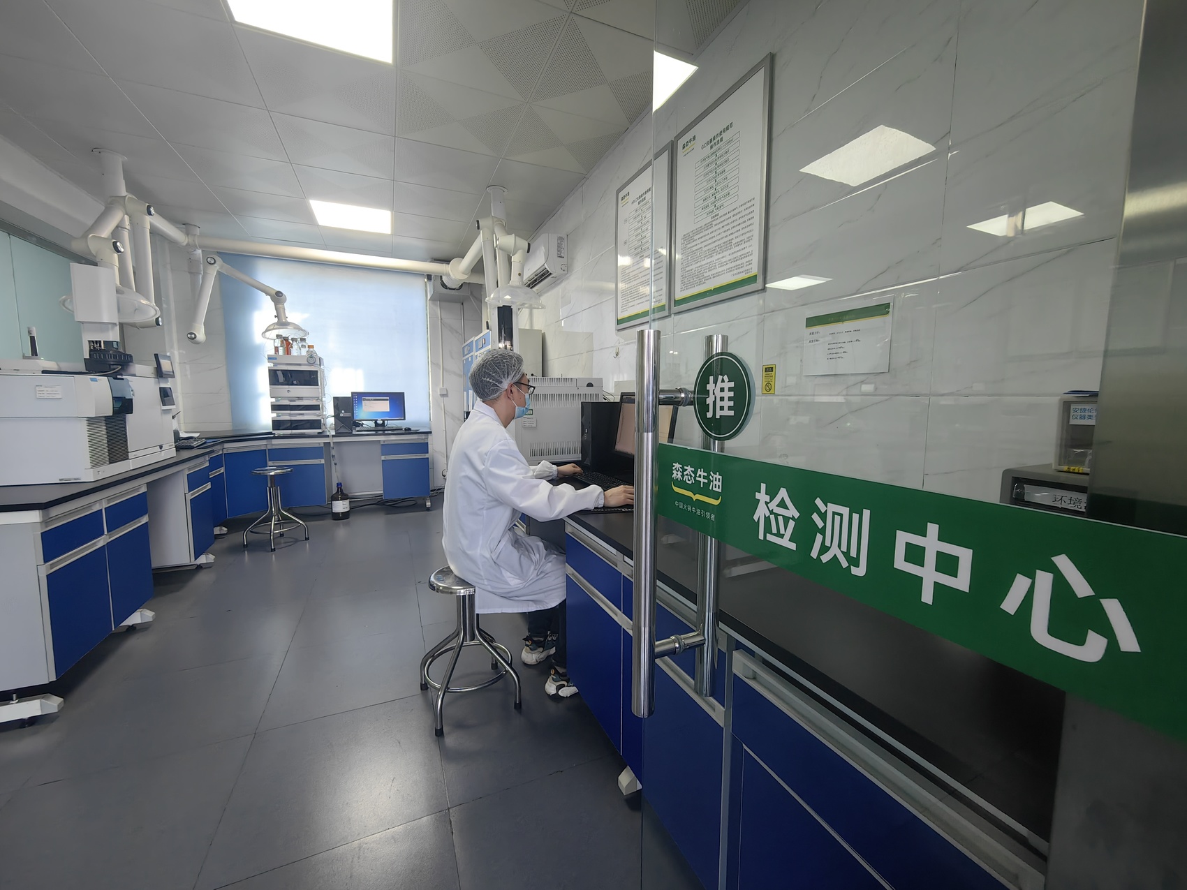这里拥有多种检验检测设备,其中一种叫气相色谱-质谱联用仪串联了高精度的嗅辨分析仪,该设备的核心功能就是对牛油的风味组分进行定性和定量的研究。