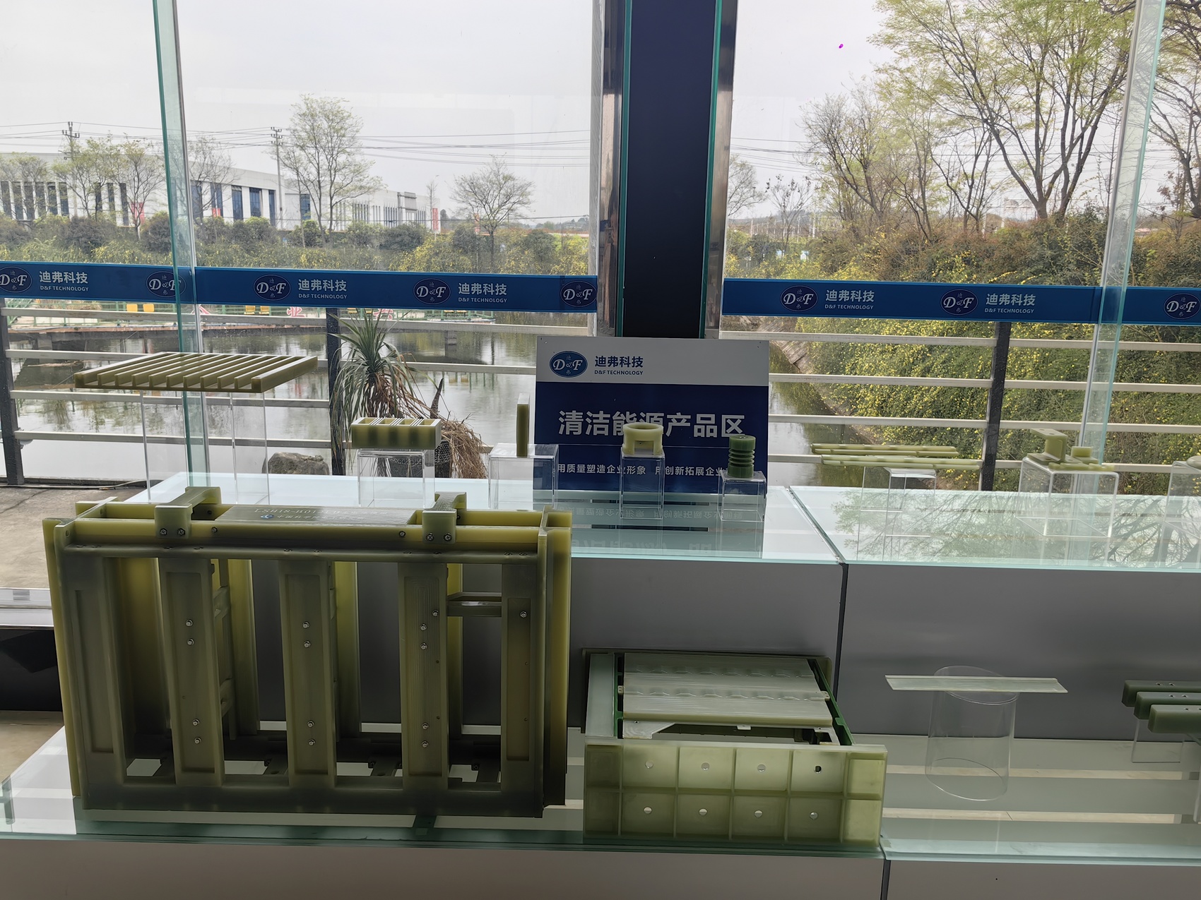 在专利技术产品区内,众多的工字、口字绝缘梁中,大件的粉色多横板绝缘梁尤为显眼。“这就是我们的专利产品多横王字梁,就是它替代了传统的绝缘板。”廖文军说,多横王字梁采用热固性塑料一次压模成型,绝缘性能好,阻燃性能高,耐自然老化,能缩小爬电距离,于2015年投产使用,广泛应用于水电站、火电站、变电站。在这款产品的研发上,迪弗科技花了近两年时间。期间,研发团队克服了材料的配套、压制模具及工艺、市场推广等多个难题。