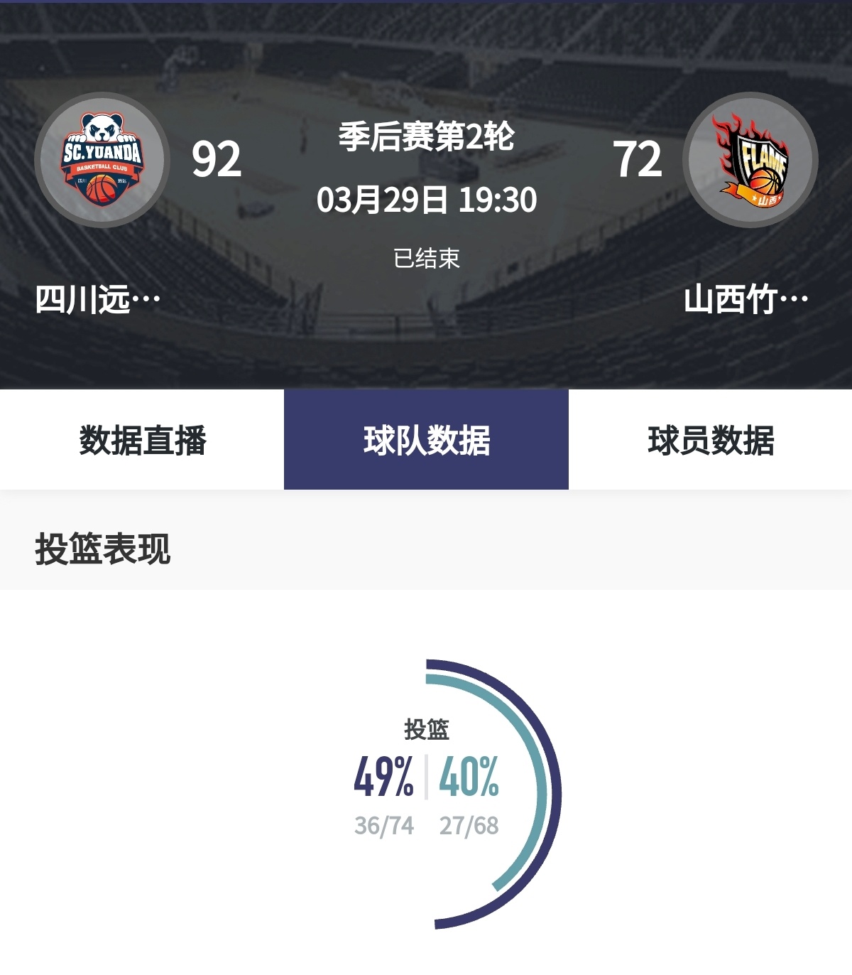 本阶段的季后赛采用三场两胜制,双方之间的获胜者进入四强。在上一场直接对话中,四川女篮在主力中锋韩旭轮休的情况下,在客场的第一轮对战依然展现出了良好的竞技状态,全队5人得分达到两位数,以96比77击败山西女篮。