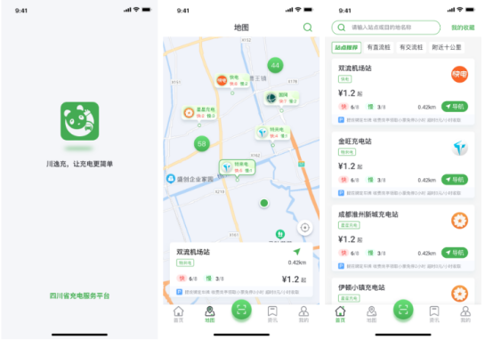 与此同时,市民们可通过手机APP“川逸充”一键查询导航到附近的充电站。用户点开“川逸充”,在首页找到距离自己最近的电动车充电站,APP上标注各个充电桩的使用费用以及空闲程度,可按需选择。