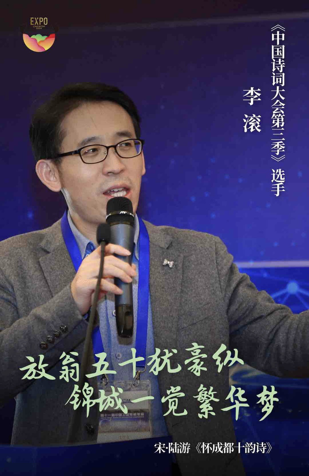诗意成都,寄语成都世园会,让李滚感触颇深。“放翁五十犹豪纵,锦城一觉繁华梦”,该句出自陆放翁《怀成都十韵诗》,在他看来,“ 其诗格调豪放跌宕,书风瘦硬通神,意致高远,词翰双美。”他感叹,“吾来蓉城快二十年矣,今也半百。人到中年,万境归淡,豪情犹在,感慨亦深。”