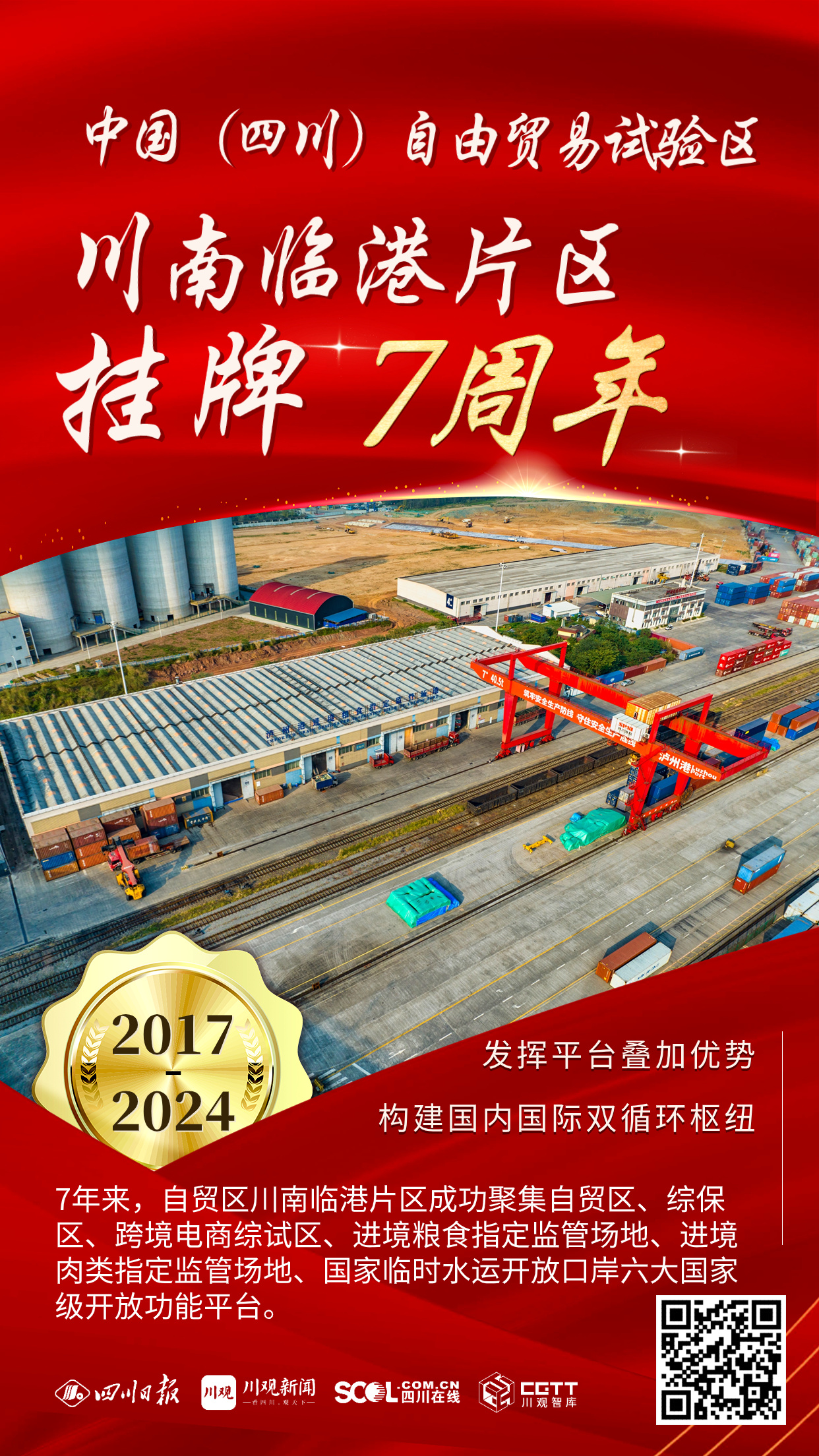 泸州地处成渝地区双城经济圈南翼,位于“一带一路”、长江经济带、西部陆海新通道交汇处。7年来,自贸区川南临港片区主动服务和融入国家战略,在这片仅占泸州全市面积万分之十六的土地上,累计新增注册企业1.88万户,2023年,实现进出口贸易额140.5亿元,同比增长11%,占泸州全市外贸比重60%以上,持续助力泸州建设内陆开放新高地,为泸州连续两届获评“四川省开放发展示范市”发挥了重要作用。