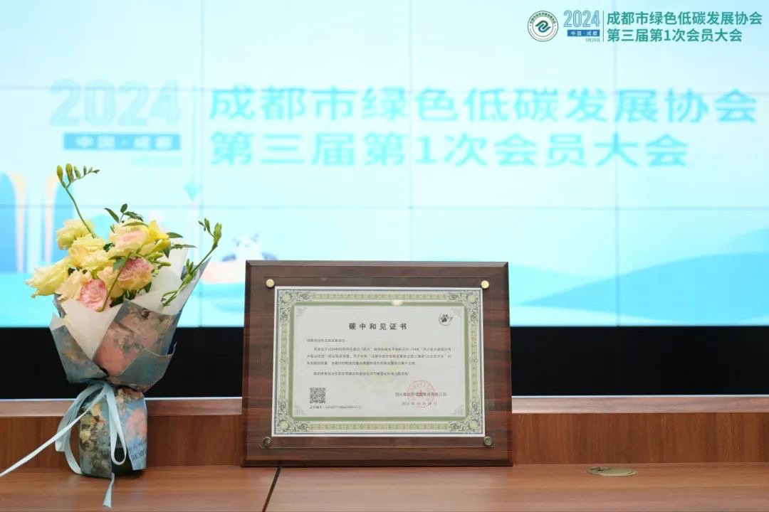 据悉,本次会议筹办以租赁代替购买,使用替代性纸张,美陈材料也使用了可回收、可降级的瓦楞纸,将其进行榫卯结构组合,形成了环保理念的展板,经过具备资质的第三方核查机构认证,在全过程碳排查后,通过“点点”碳中和服务平台集中注销核证碳减排量,用于本次大会全过程碳排放量。四川联合环境交易所有关部门负责人为本次大会颁发了碳中和见证书。