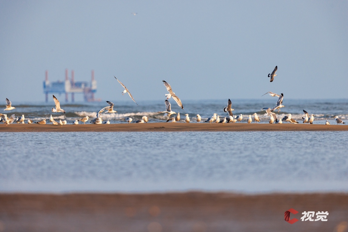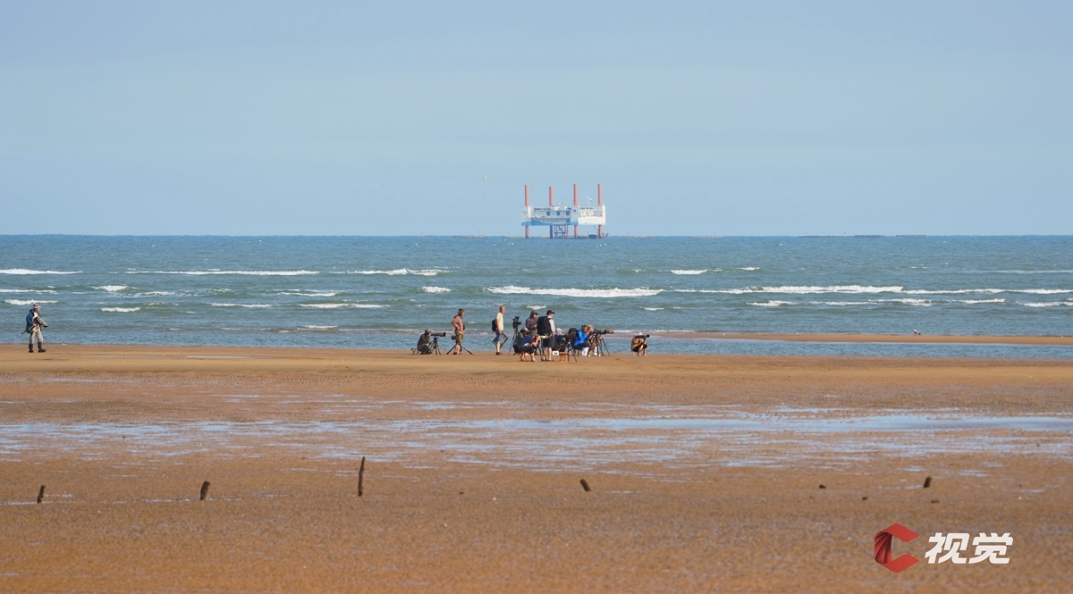 摄影师们在山东省日照市泊里镇王家滩口蹲守。