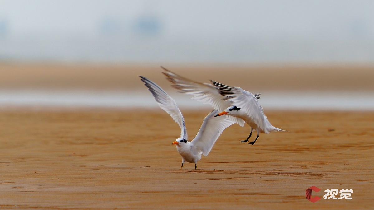 中华凤头燕鸥在日照市泊里镇王家滩口。