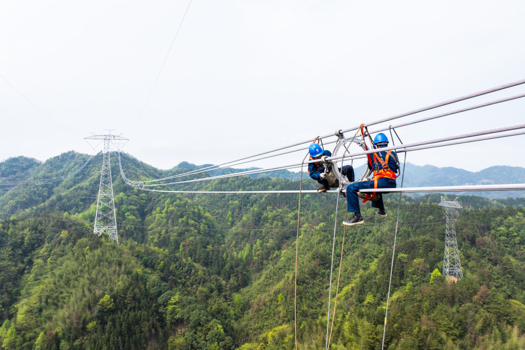 当日,在湖南省益阳市安化县冷市镇,湖南省送变电工程有限公司电力工人完成“宁电入湘”工程跨越宾金线架线施工,为“宁电入湘”工程早日建成运营奠定基础。