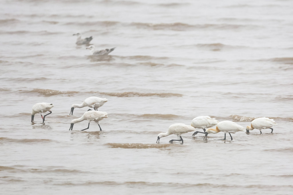 3月31日,一群水鸟在浦东南汇东滩湿地觅食。