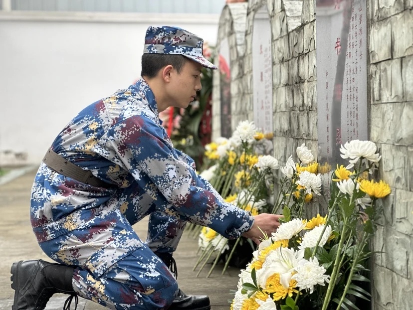 基地揭牌当天还举行了“铸魂·2024·清明祭英烈”活动,烈士家属代表、老战士代表、学校师生代表、驻区部队官兵代表、公安干警代表以及各界干部群众代表等300余人参加活动。参加活动的学生张兴杨说:“参加这次清明祭英烈活动,让我感受到了革命先辈们为建设空军事业的不懈努力,他们敢为人先的精神值得我们学习,我们也要为祖国建设献出自己的力量。”