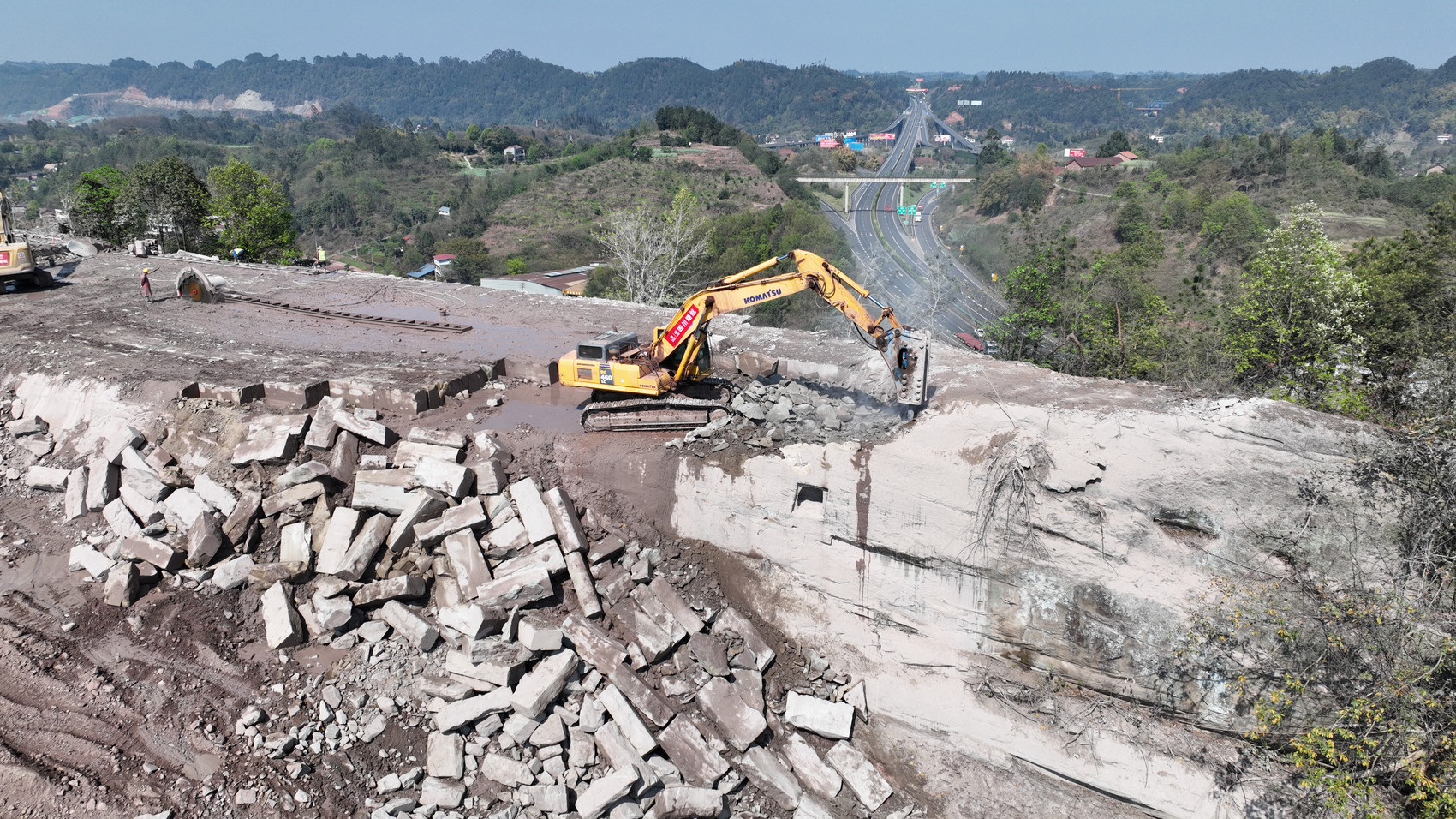 3月30日,位于宜宾市翠屏区北部的中环线元水互通节点施工现场,两台挖掘机在50余米高的山顶上“挥舞”着铲斗,配合一旁地面上的工程车辆,为元水互通工程的匝道建设打好基础。为提高交通承载能力,工程在G93高速连接处的收费站预留了16个车辆进出口,提高通行效率。