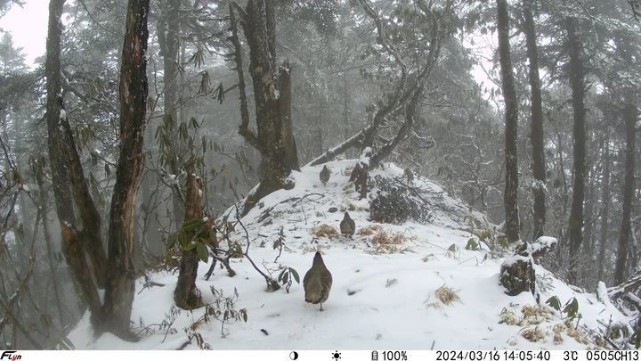 与此同时,绿尾虹雉、林麝、川金丝猴、羚牛、岩羊、小熊猫等野生动物也在红外相机镜头前频繁“出镜”,还首次在芦山县域内发现国家一级重点保护野生动物红喉雉鹑活动的影像画面。