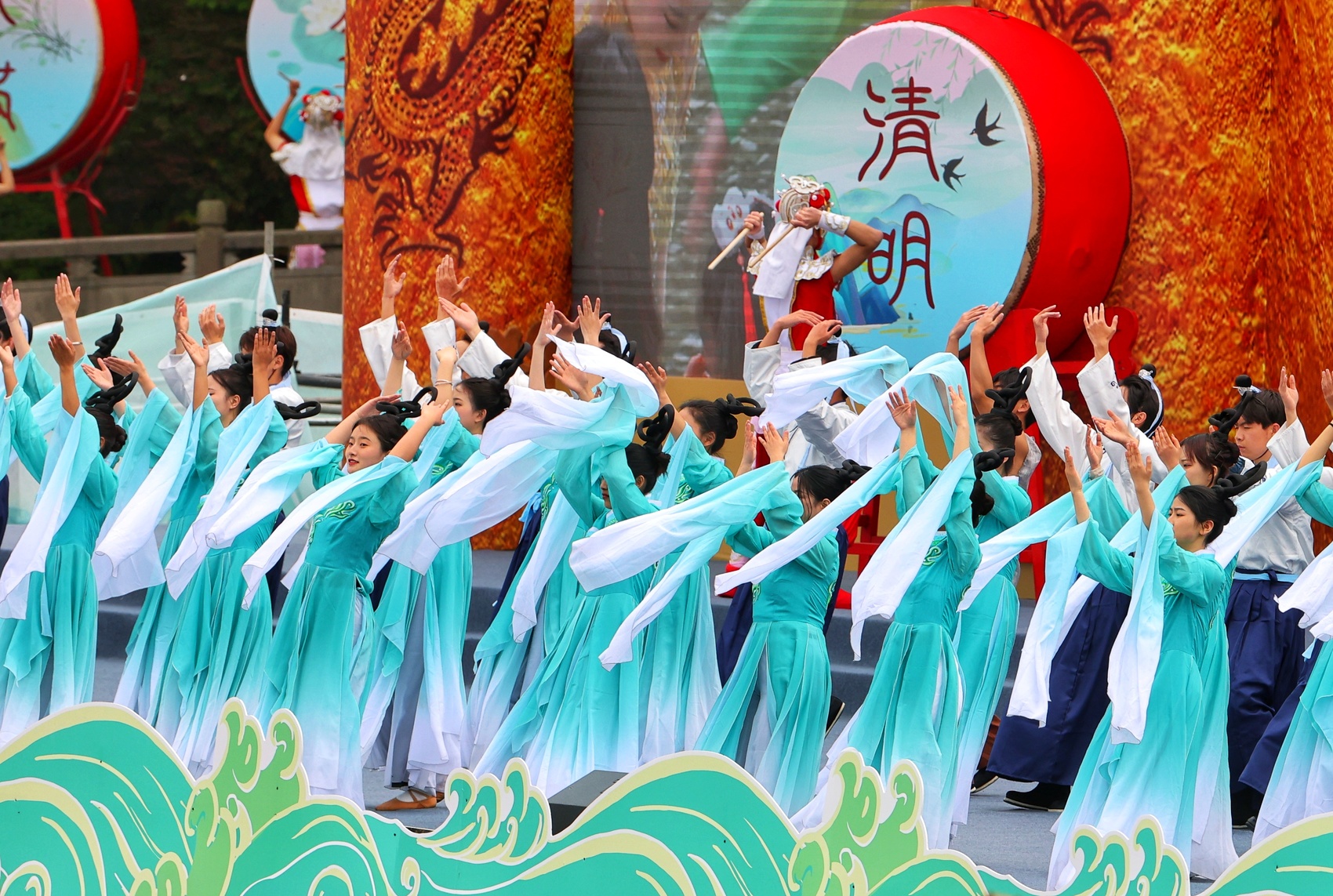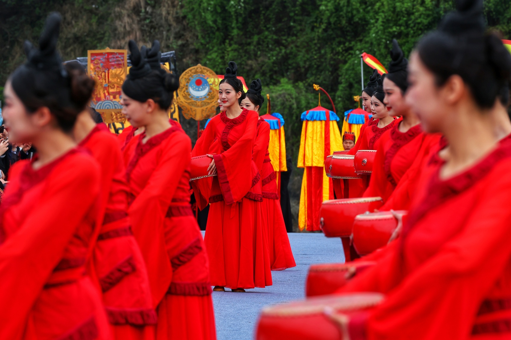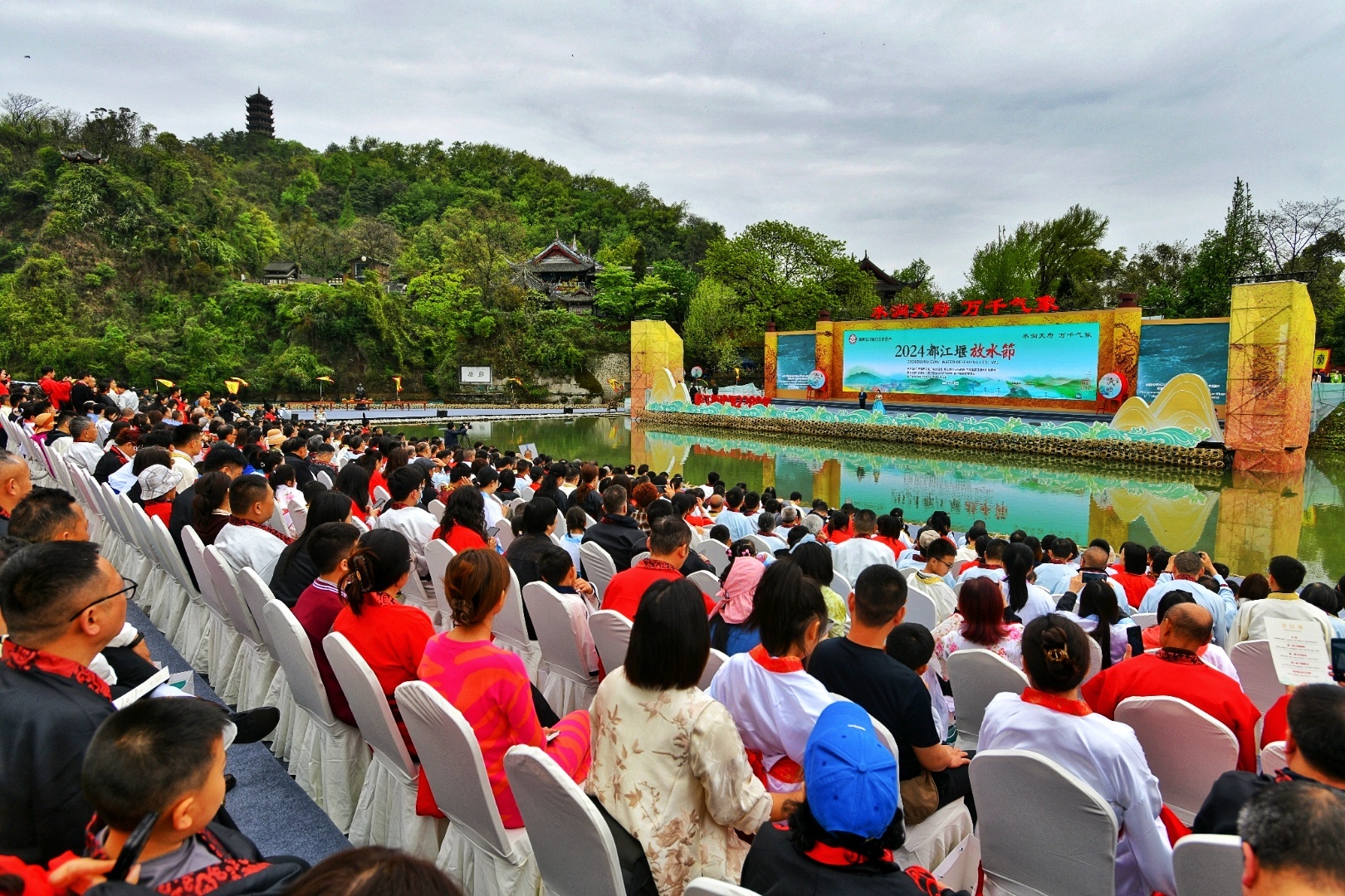 4月4日,2024都江堰放水节在都江堰景区飞沙堰溢洪道盛大启幕。上千名观礼嘉宾着秦朝服饰,学习秦朝礼仪,沉浸式体验智慧的治水文化。