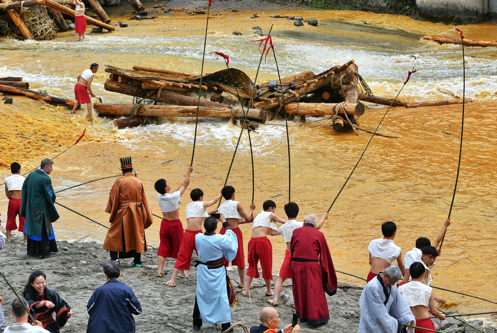 “砍杩槎,放水啰!”随着主祭官一声令下,杩槎开处,一江春水流向广袤的成都平原。
