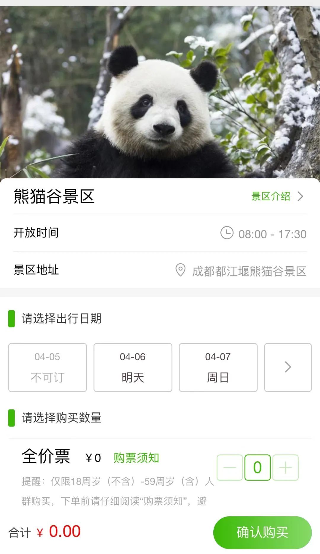 4月5日,据熊猫谷预约页面显示,4月5日门票已显示不可订。