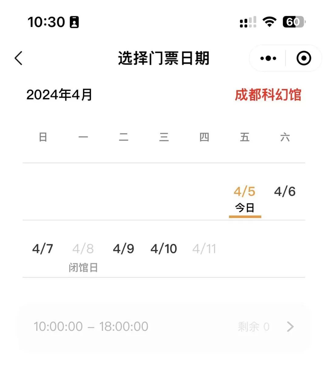 据成都科幻馆预约页面显示,4月5日门票已约满,未预约勿前往。