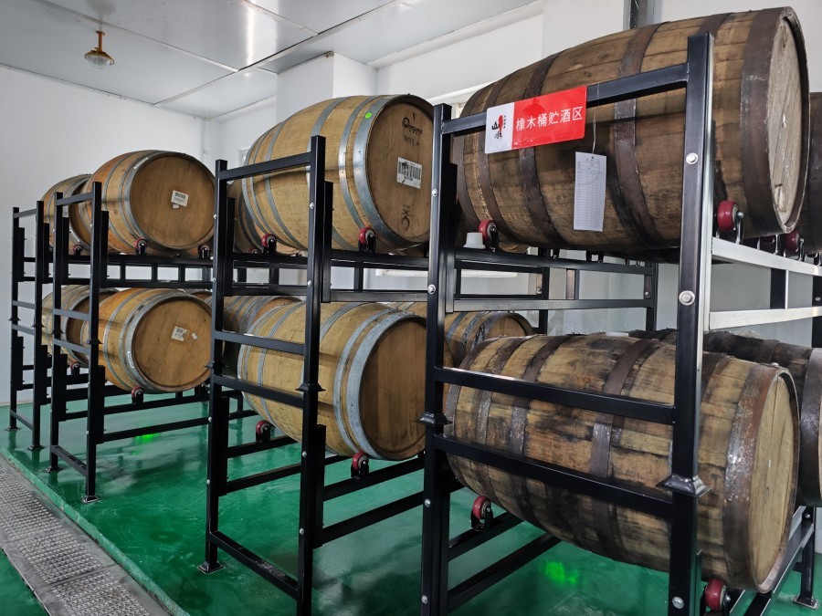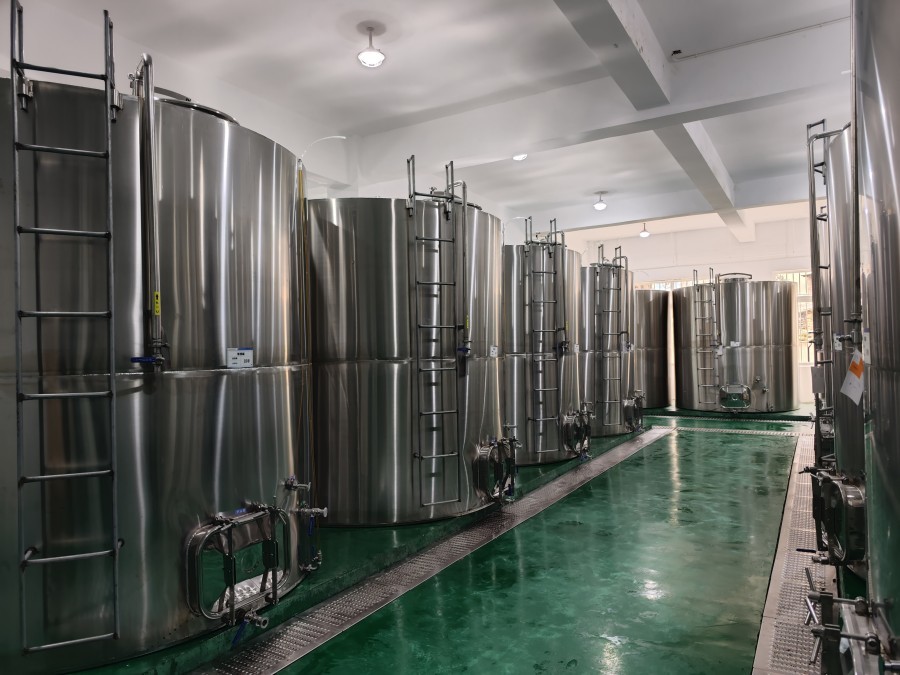 走进山水酒业青梅果酒酿造厂果酒发酵车间,浓郁的果酒香扑面而来,30个容积1000升的浸提罐整齐排列,每个浸提罐上都放有一张存料卡,详细记录着材料的编号、名称以及原料比例。