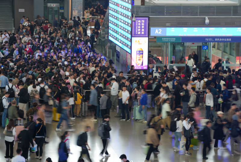 4月5日,川观新闻记者从中国铁路成都局集团有限公司成都车站获悉,清明小长假首日,铁路成都车站迎来客流高峰,全站累计发送旅客50.1万人次,创历史新高。此前铁路成都车站旅客发送量最高纪录为今年春节前夕2月8日创下的46.2万人次。