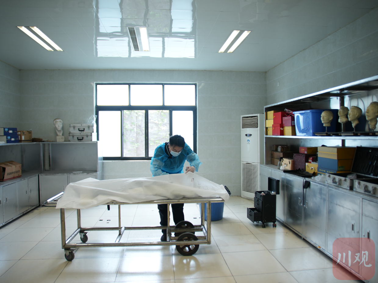 成都市殡仪馆遗体整容师蔡光强在工作中