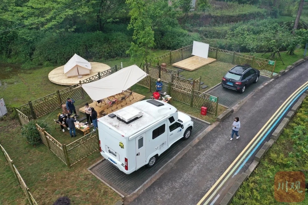 长宁·双河国际自驾游露营地内建有大面积的多功能草坪,随便选一块草地,搭一个帐篷,三五好友一起熟食简餐,炭烤水煮皆可。坐在帐篷里,周边都是高山耸立,云雾缭绕山间宛如仙境,简直就是一个宜宾“小川西”的体验。除了帐篷露营,还可以选择自驾房车到这里露营,一车一院子,烧烤或自助餐,这里是家人出游的不错选择。
