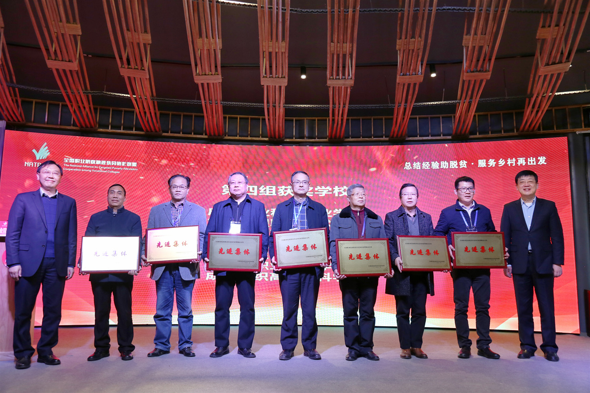 会上,表彰了联盟脱贫攻坚先进集体35个、脱贫攻坚先进个人45名和优秀通讯员15名。同时还通报了31项在1年内顺利结题的精准扶贫、乡村振兴专项课题研究,湖南工艺美术职业学院开设的《高职院校“非遗+精准扶贫”模式创新研究——以湖南工艺美术职业学院为例》和成都农业科技职业学院开设的《校政企社协同的“四位一体”的精准扶贫模式研究——以达州市达川区堡子镇高家湾村为例》均在其中。四川金指南教育科技有限公司向深度贫困地区12所中职学校捐赠教学设备的签约仪式也同时在会议现场进行。