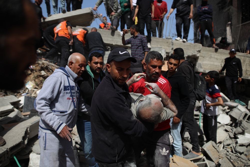 3月31日,在加沙地带中部迈加齐难民营,人们在以军空袭后开展救援。新华社发