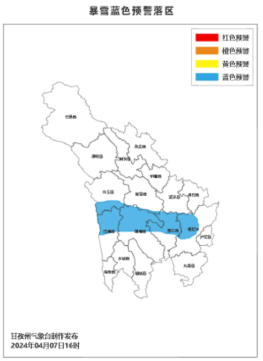 首先,7日16时,甘孜州气象台继续发布暴雪蓝色预警:预计7日下午到8日白天,白玉、康定、雅江、理塘、巴塘境内高海拔地区将出现5毫米以上降雪。请各级各相关部门落实防雪、防冻的应急措施,采取各种必要措施,加大防范工作力度。