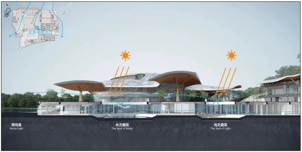 主展馆湖面新风的巧妙引入与自然通风的设计降低能耗 图据中建西南院