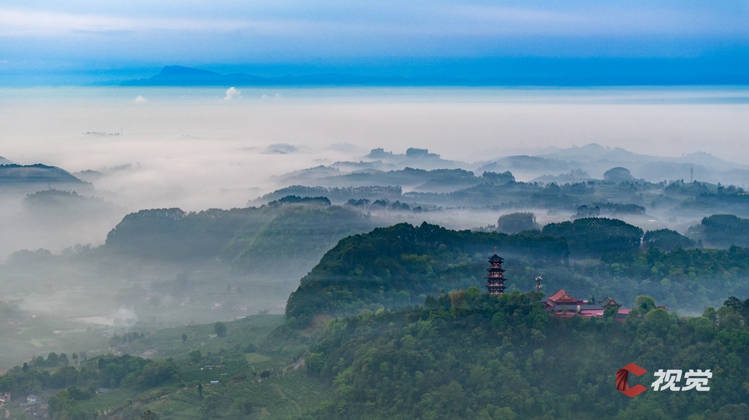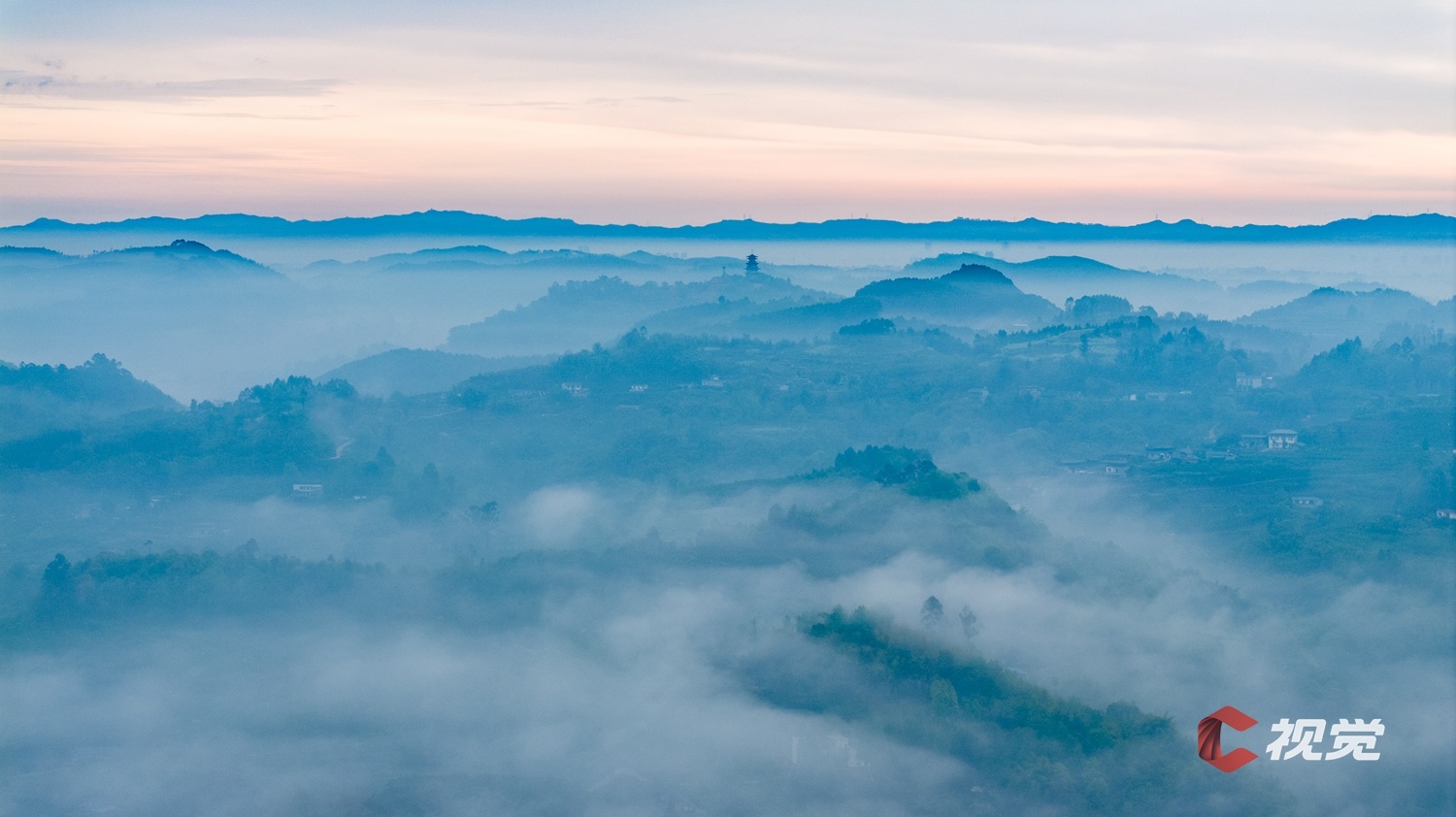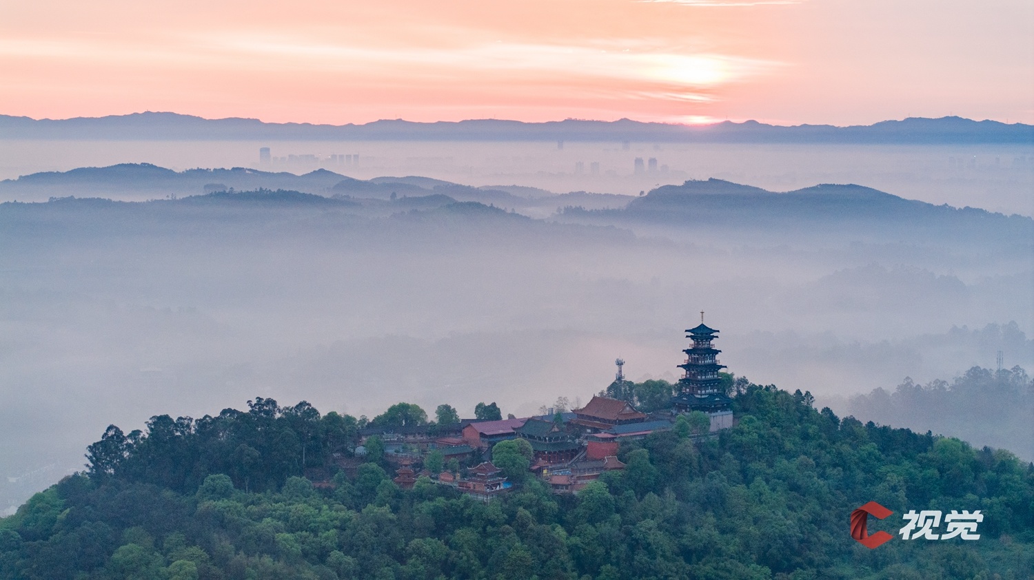 4月8日清晨,一场春雨后的眉山市彭山区境内的彭祖山云雾缭绕,朝霞、云雾、青山交相辉映,宛若一幅流动的水墨画,“丹青感”十足。