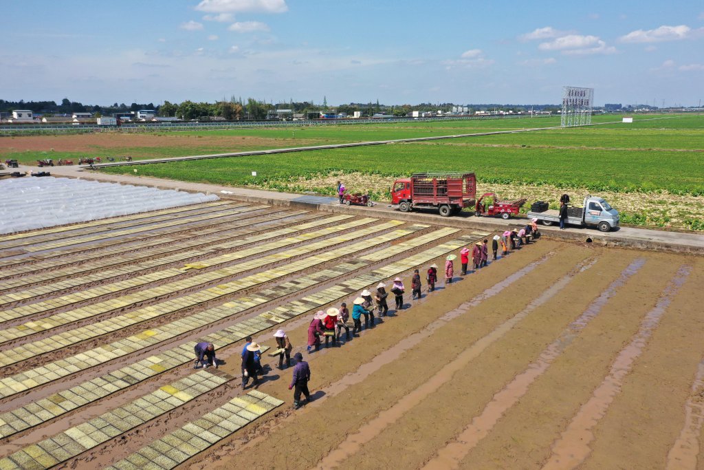 最近,在泸州市合江县白沙镇马鹿村,前期育好的水稻秧苗陆续栽插入田。