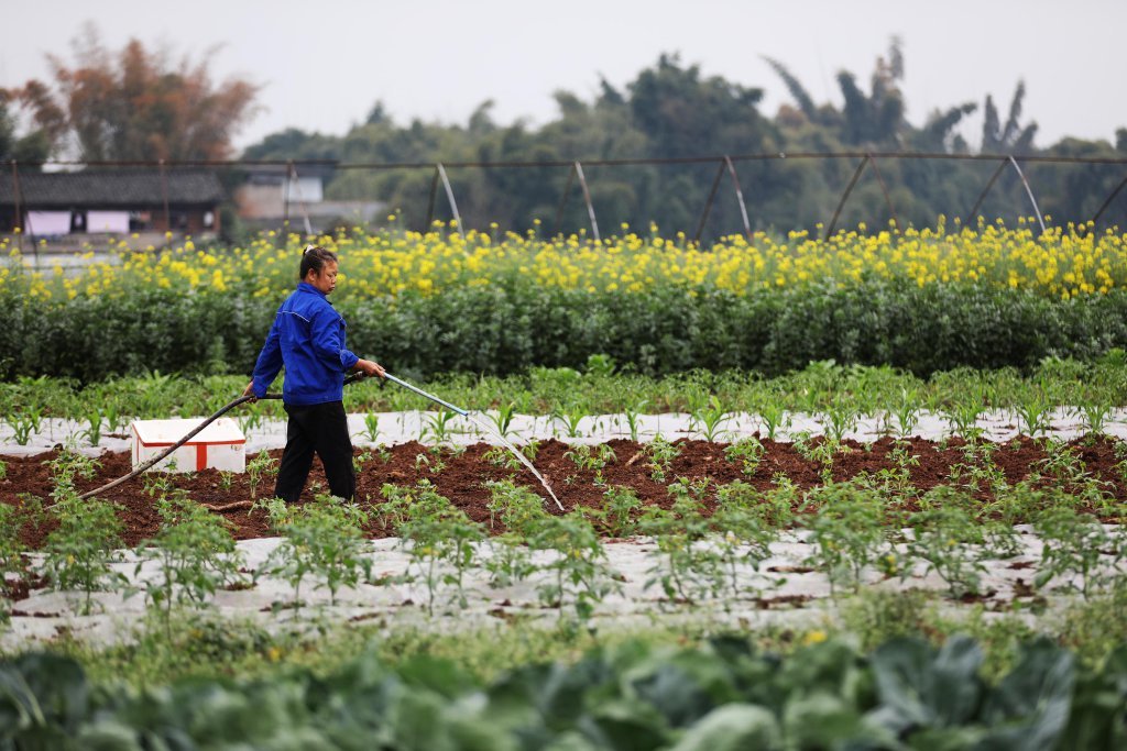 宜宾市南溪区仙源街道长江村村民正进行田间管理。 兰锋 摄